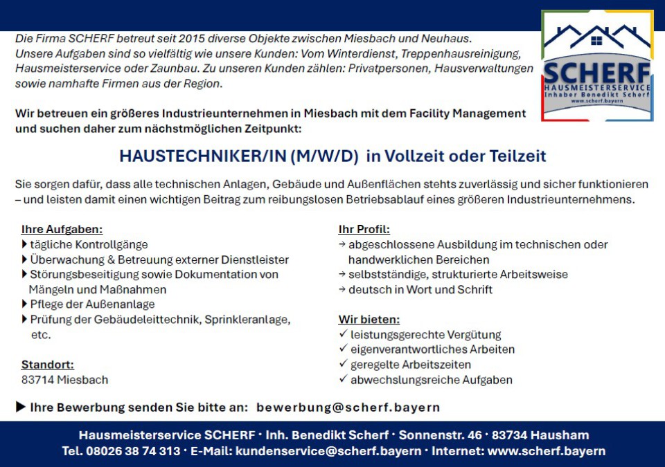 Die Firma SCHERF betreut seit 2015 diverse nahmhafte Firmen im Bereich Hausmeisterservice und Winterdienst.